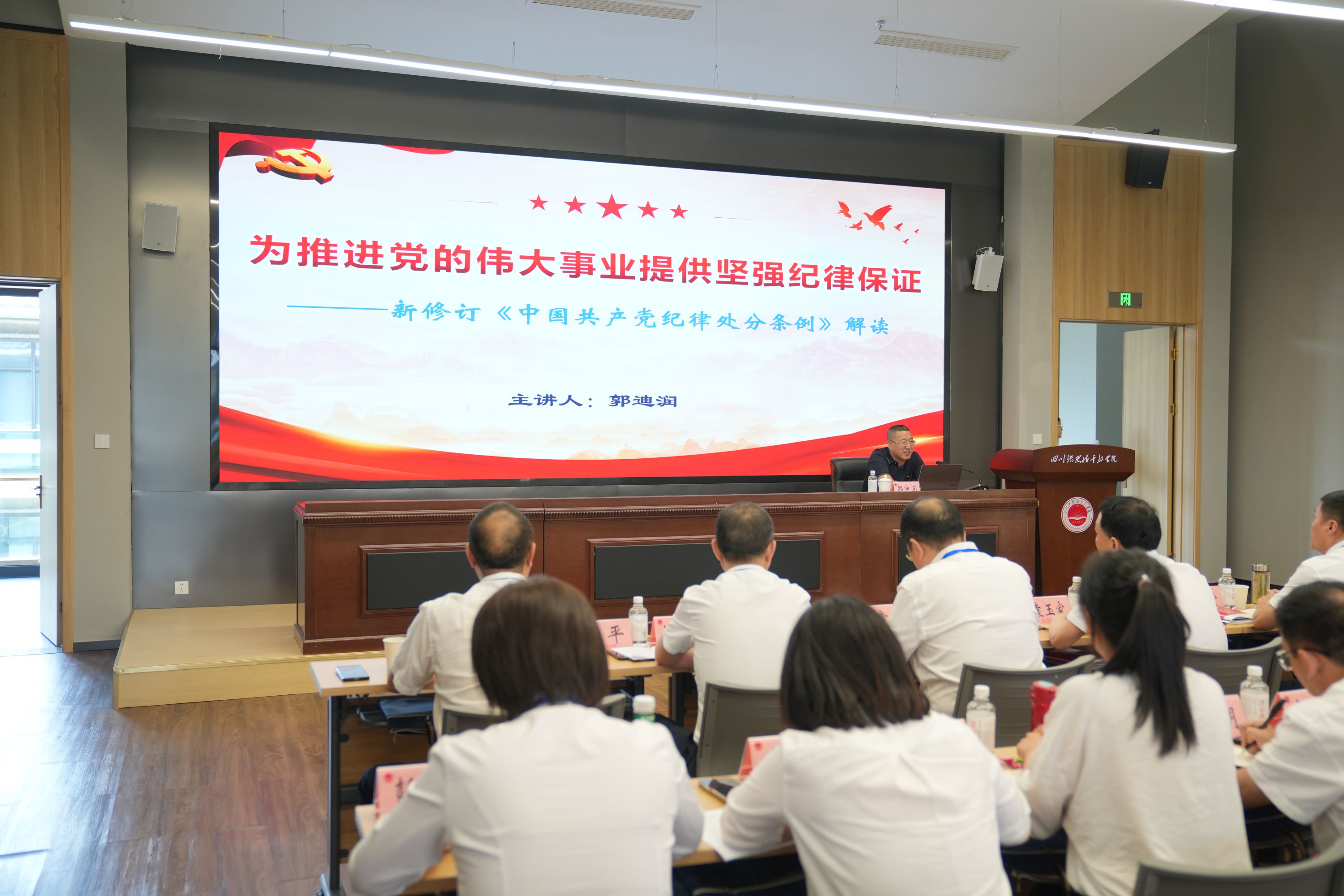 授課老師圍繞強化黨紀教育、提升黨性修養的主題,為大家全面系統地解讀了《中國共產黨紀律處分條例》;講授了《朱德的崇高品德和精神風范與嚴肅黨內政治生活》廉潔黨課和《為人民服務思想的時代光輝》專題黨課,用簡潔精煉的語言從不同角度、不同維度深刻詮釋了老一輩革命家對黨的忠誠、對人民的赤誠,引導學員堅定理想信念、牢記初心使命,不斷提升政治紀律意識和廉潔自律能力。