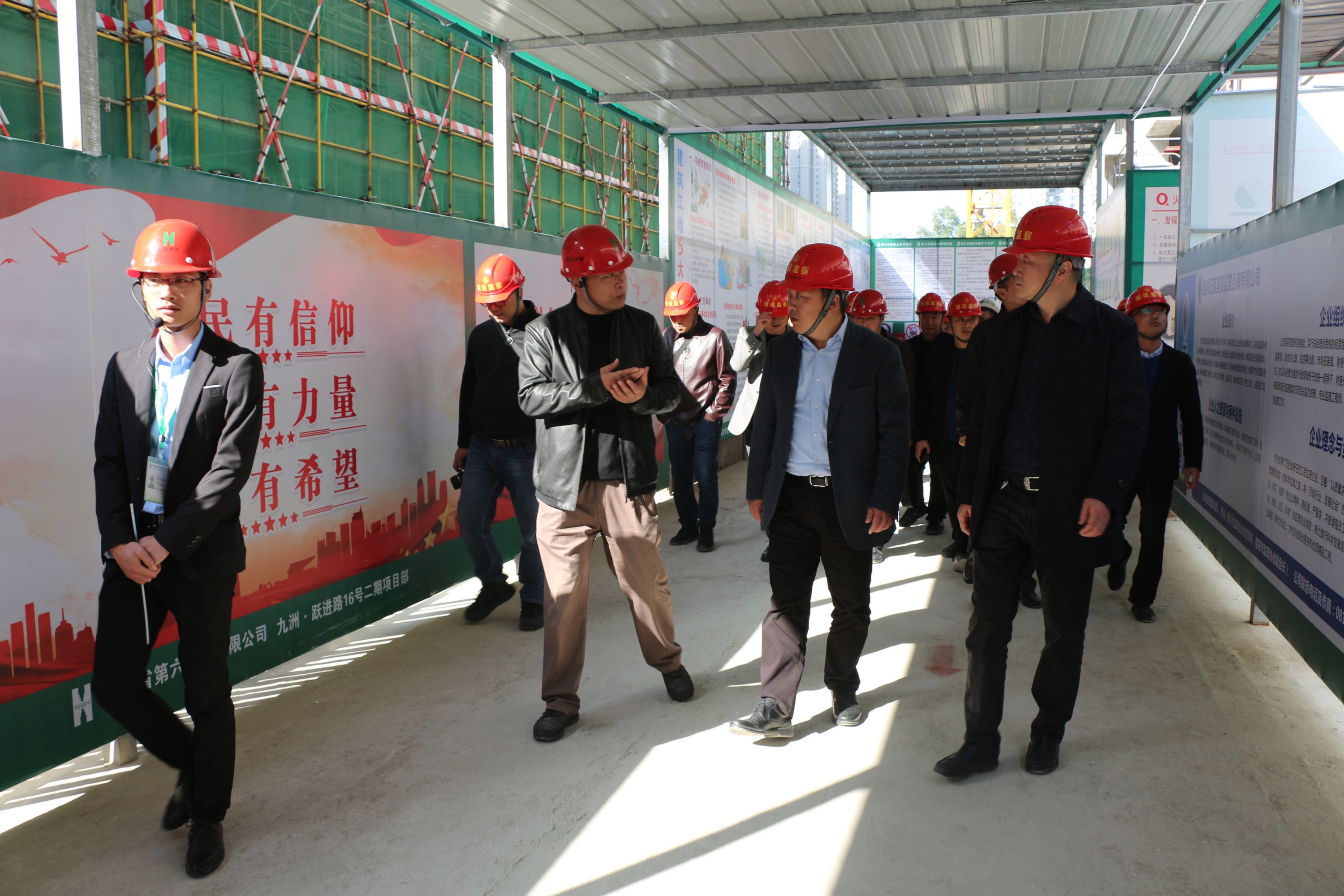 “項目自開工伊始項目部即按照公司要求,嚴格實行‘安全管理規范化、防護設施標準化、綠色施工常態化’管理,嚴格落實企業負責人帶班檢查、危大工程管理等考核體系,積極運用鋁膜、智能爬架、塔吊安全預警、視頻智能監控、實名認證等現代工藝和科技智能手段,并在現場設有集成式安全體驗館,通過更嚴格標準的措施,總結出一套創新的可行性的安全管理做法。”在交流會現場,六公司項目執行經理王俊在交流過程中同大家講到。據悉,此次觀摩,重點展示六公司在綠色施工、安全管理及農民工工資管理三方面的做法。在綠色施工方面,展示了從施工出入口沖洗設施、主要道路噴淋,施工樓層噴淋降塵,揚塵在線監測設施等各類防塵舉措及管理手段;在安全生產方面,對升降腳手架、起重機械、鋁模施工等危大工程,從責任制度、方案、教育、交底、檢查和驗收等各個環節,進行了較全面地展示,彰顯了企業安全生產主體責任;在農民工工資管理方面,項目作業工人實名制管理考勤,總承包單位的專戶直發,以及工資糾紛處理渠道的暢通,有力保障了民工工資按月足額發放,維護了社會穩定。