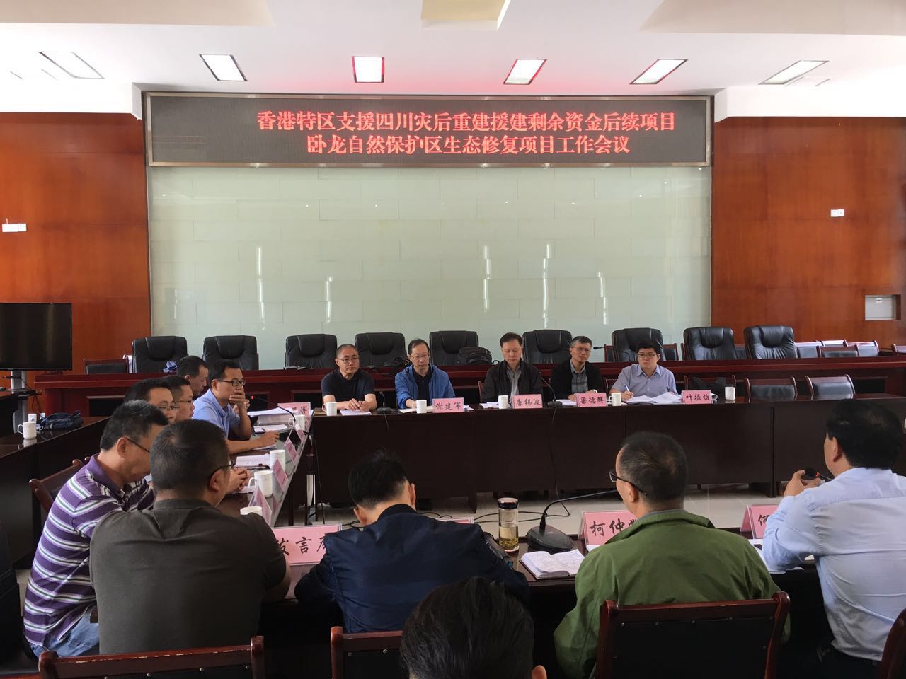 8月28日上午,四川省汶川臥龍?zhí)貏e行政區(qū)管理局組織召開了“香港特區(qū)支援四川災(zāi)后重建援建剩余資金后續(xù)項(xiàng)目臥龍自然保護(hù)區(qū)生態(tài)修復(fù)項(xiàng)目”工作會(huì)議。香港支援四川災(zāi)后重建小組副組長唐錫波先生一行、省發(fā)改委省引進(jìn)外資項(xiàng)目辦副主任謝建軍、省林業(yè)廳保護(hù)站副站長顧海軍、四川臥龍國家級(jí)自然保護(hù)區(qū)管理局何小平局長、以及設(shè)計(jì)、監(jiān)理、施工單位代表共計(jì)37人參加了會(huì)議。